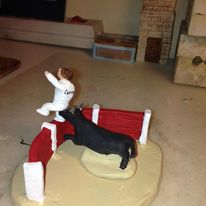 Coup de barrière : représente une scène d’une course camarguaise entre un raseteur et un taureau.